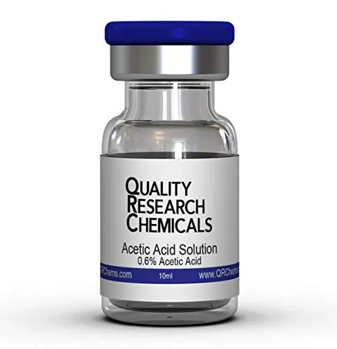 Acetic Acid 0.6% Solution is a diluted aqueous solution of acetic acid, primarily used in laboratory research. It is designed for reconstituting peptides and ensuring their stability during experiments.
